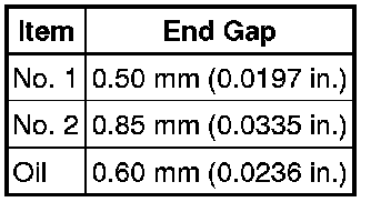 If the end gap is greater than the maximum, replace the piston ring. If the end gap is greater than the maximum even with a new piston ring, rebore all the 6 cylinders or replace the cylinder block sub-assembly.