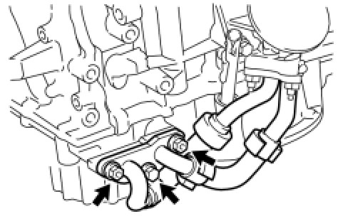 (b) Install the oil cooler pipe with the bolt and 2 nuts.
