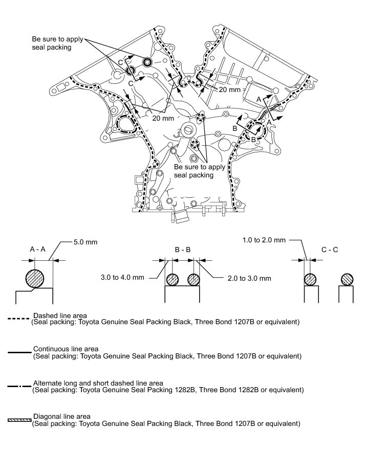 (b) Apply seal packing in a line to the timing chain cover as shown in the following illustration.