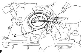 (a) Using a screwdriver, pry out the timing chain case oil seal.