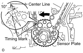 (a) Turn the crankshaft counterclockwise 10° to loosen the chain of the crankshaft timing sprocket.