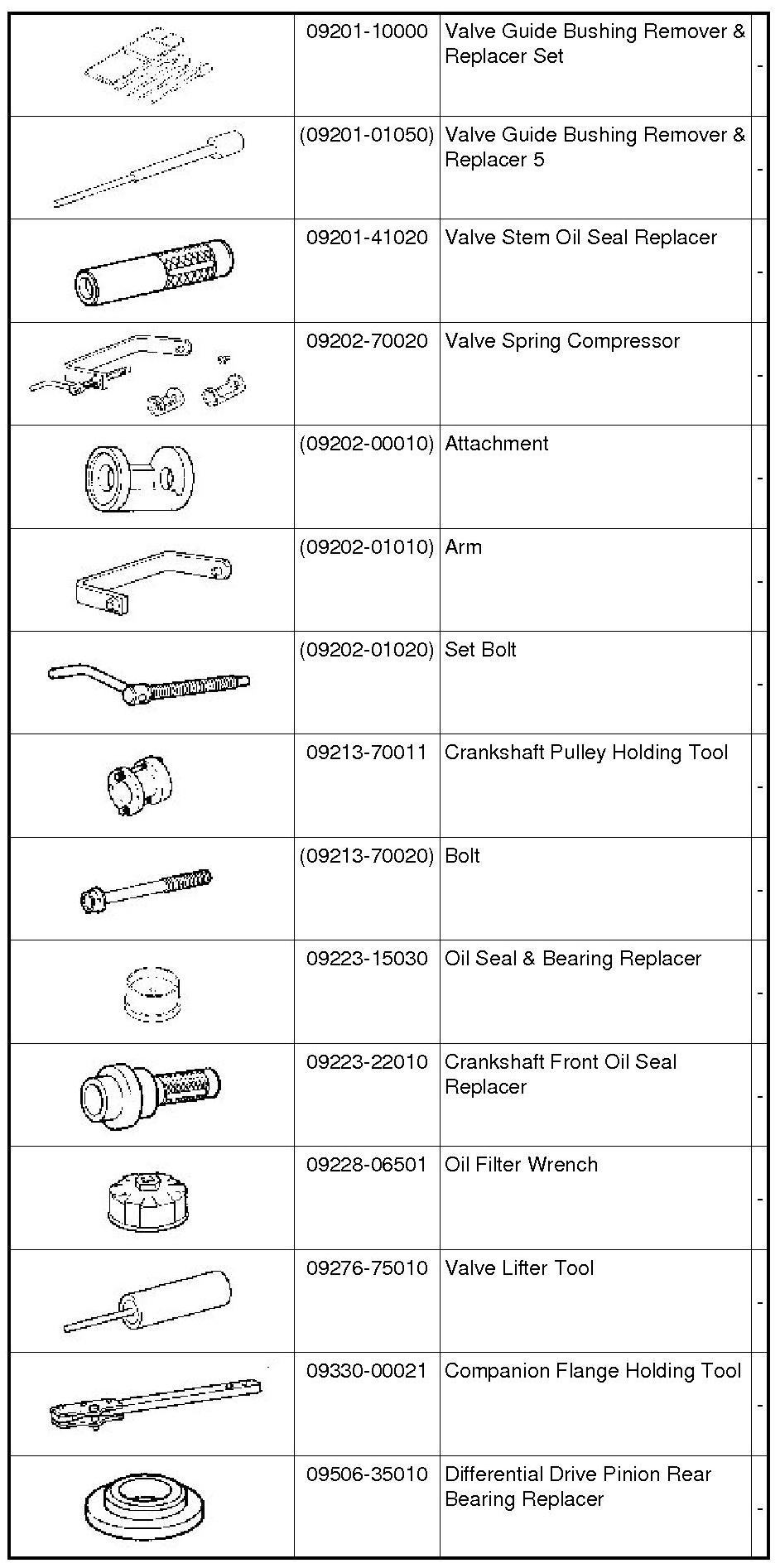 PREPARATION: 2GR-FE ENGINE MECHANICAL: SST