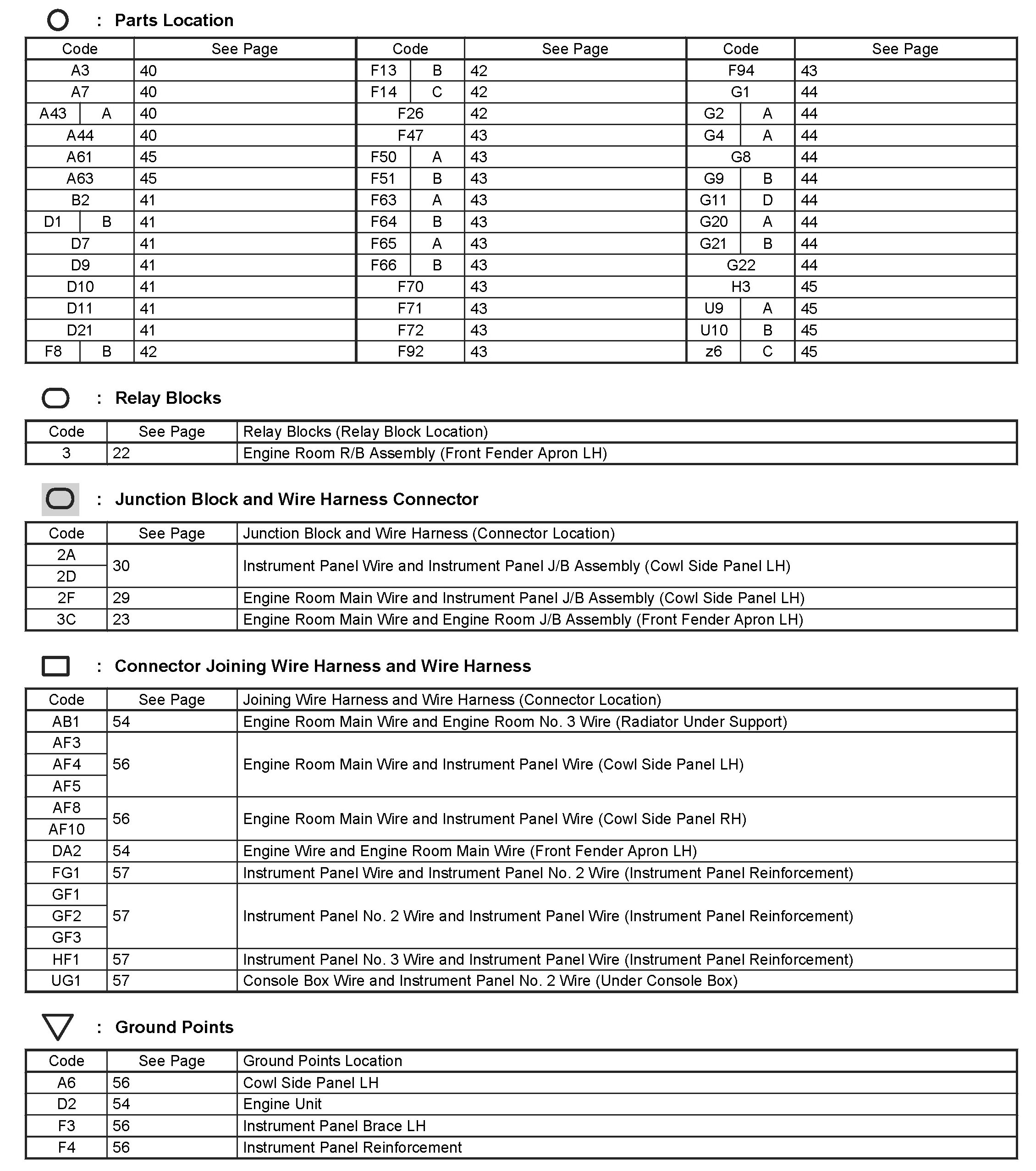 Locations: The locations of components, connectors, ground points, and splices referred to within these diagrams can be found at Vehicle Locations. Locations