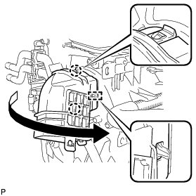 (a) Disengage the 2 claws and guide, and remove the No. 5 air duct sub-assembly as shown in the illustration.