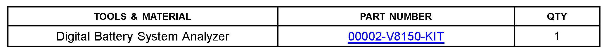 ^ Test batteries monthly (more often in high heat or cold areas), using the Digital Battery System Analyzer (P/N 00002-V8150-KIT). Refer to TSIB PG001-06, "Battery Maintenance for In Stock Vehicles and Pre-Delivery" for complete battery maintenance procedures.