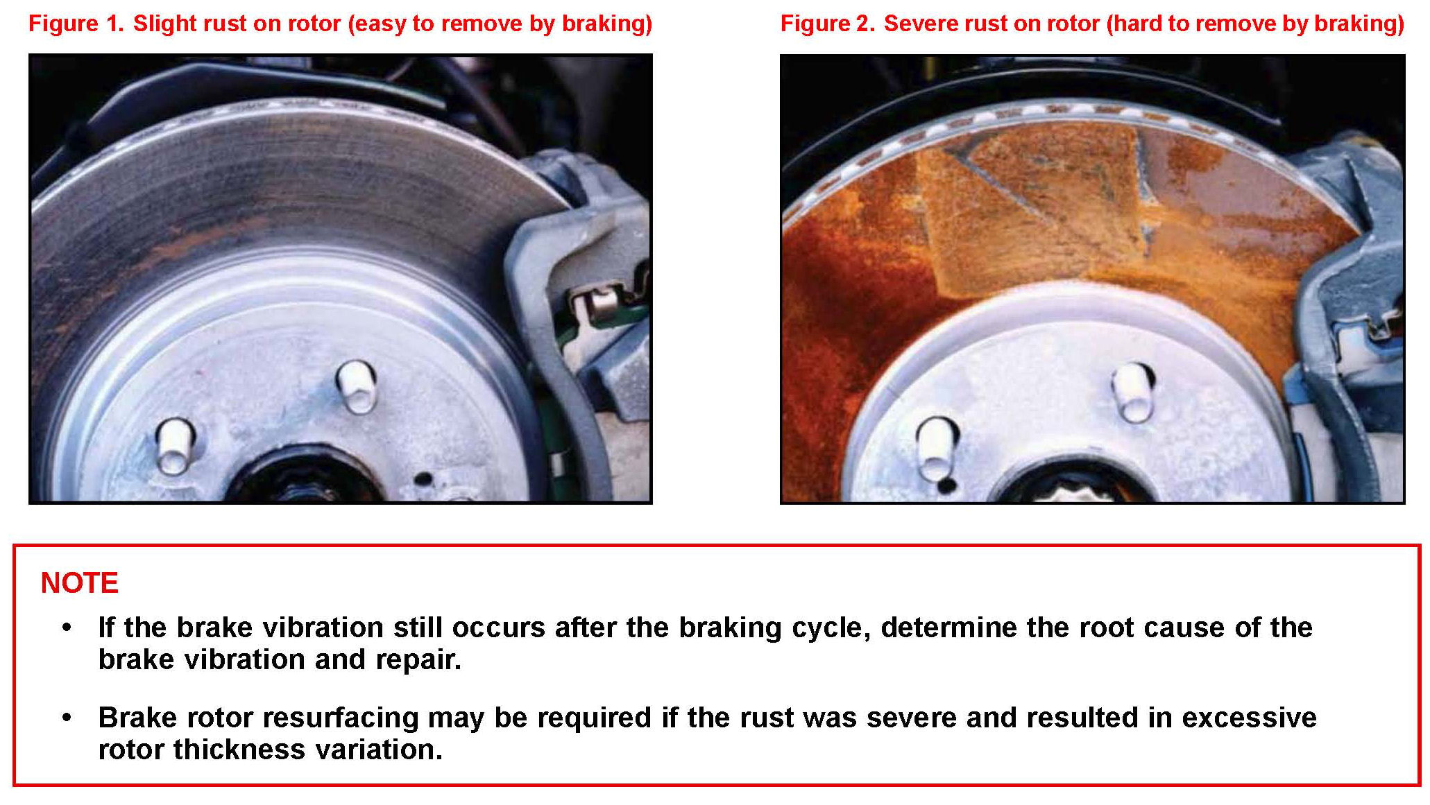 The brake rotors are made of cast iron so they may show gradual build-up of surface rust during long term storage. At least once every two months drive the vehicle and use the brakes normally stopping from about 30 mph at least 20 times. This regular usage will help prevent severe rust build up and the possibility of unwanted brake vibration concerns due to rust.