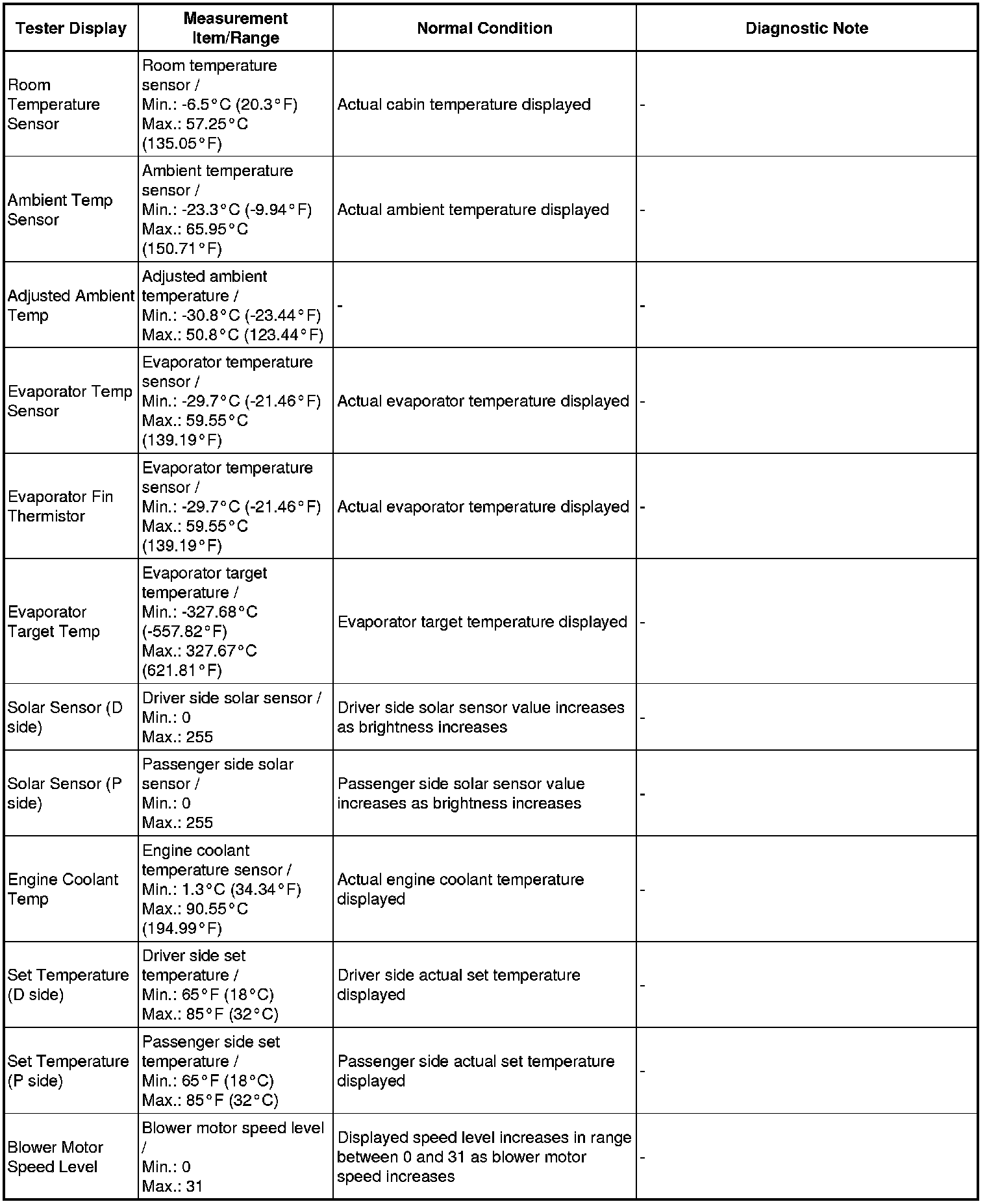 HEATING / AIR CONDITIONING: AIR CONDITIONING SYSTEM: DATA LIST / ACTIVE TEST