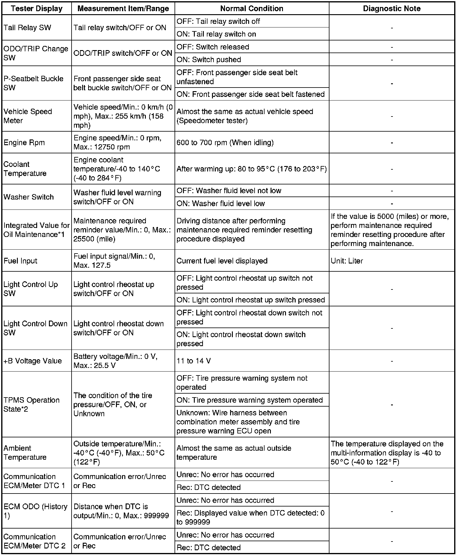 (1) for Combination Meter: Body Electrical / Combination Meter / Data List.