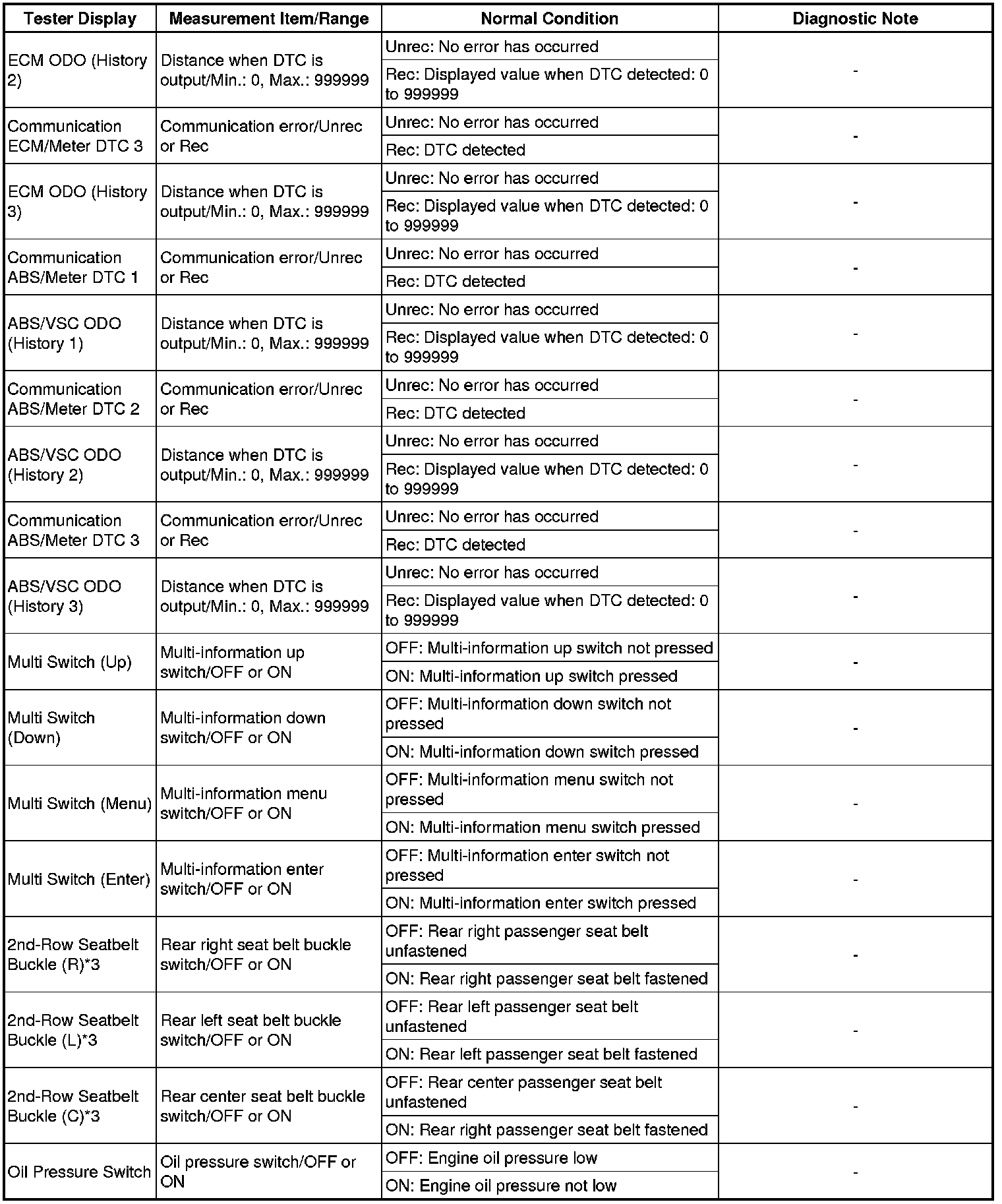 * *3: Although the item is displayed on the Techstream, the vehicle have not got the indicator, warning, buzzer, or display.