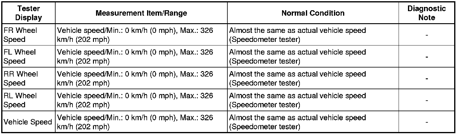 (2) for ABS/VSC/TRAC: Chassis / ABS/VSC/TRAC / Data List.