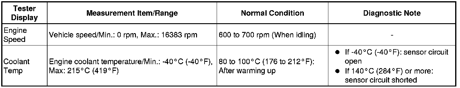 In the table below, the values listed under "Normal Condition" are reference values. Do not depend solely on these reference values when deciding whether a part is faulty or not.