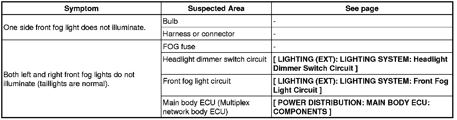 LIGHTING (EXT): LIGHTING SYSTEM: PROBLEM SYMPTOMS TABLE