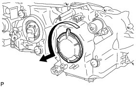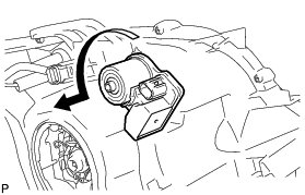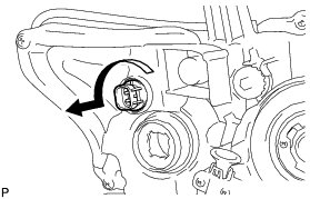 (a) Turn the No. 1 headlight back cover in the direction indicated by the arrow shown in the illustration, and remove it.