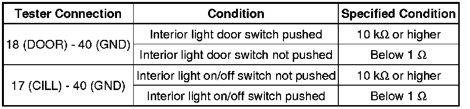 The main body ECU (multiplex network body ECU) detects the condition of the interior light door switch and interior light on/off switch.