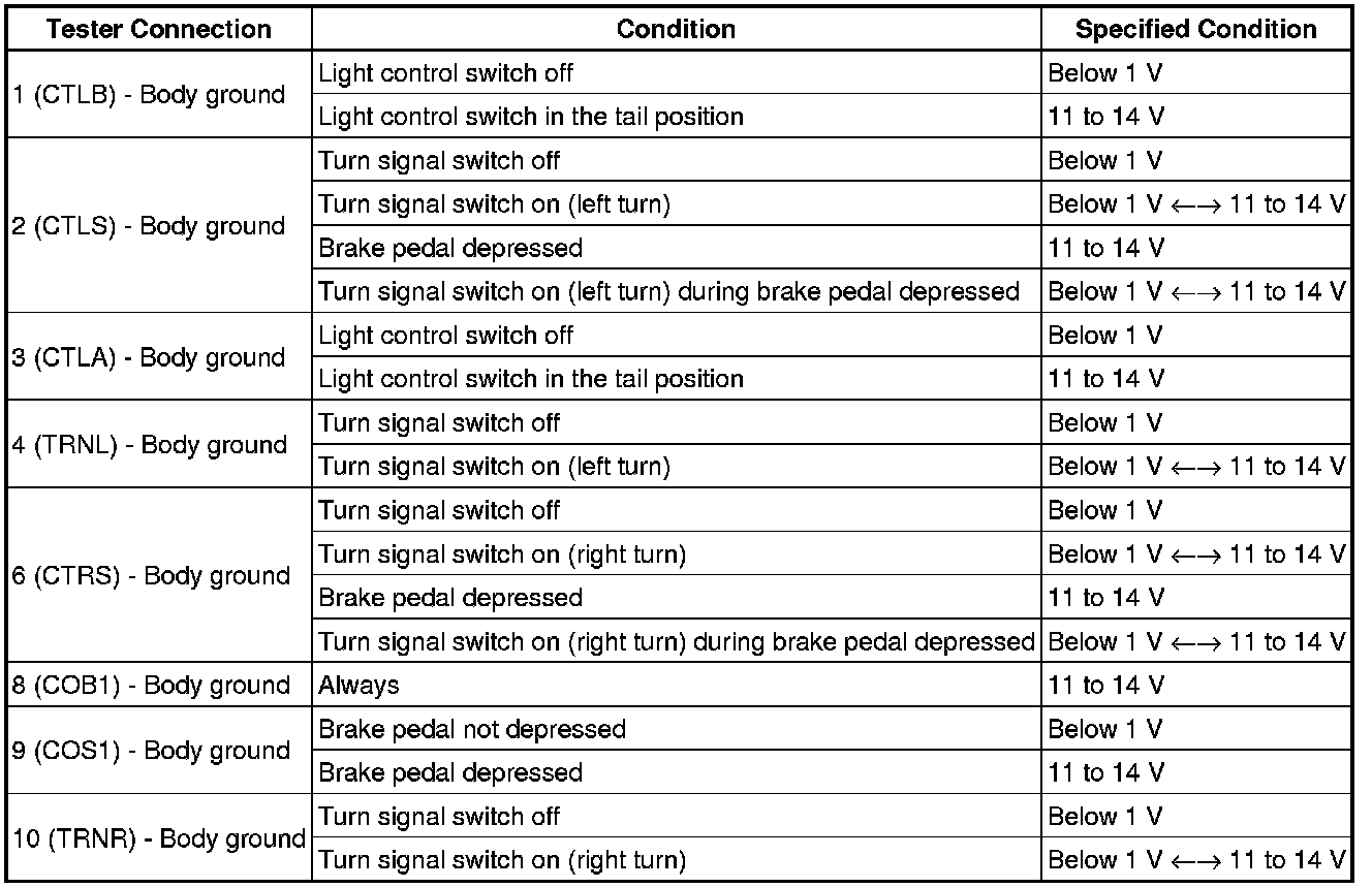 If the result is not as specified, repair or replace the harness or connector.