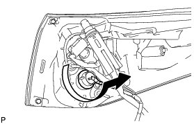 (a) Turn the tail light bulb and rear combination light socket and wire sub-assembly in the direction indicated by the arrow shown in the illustration, and remove them as a unit.