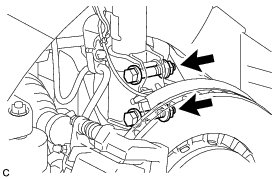 (b) Remove the 2 nuts on the lower side of the front shock absorber.