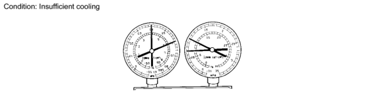(6) Refrigerant is overcharged or cooling effectiveness of condenser is insufficient.