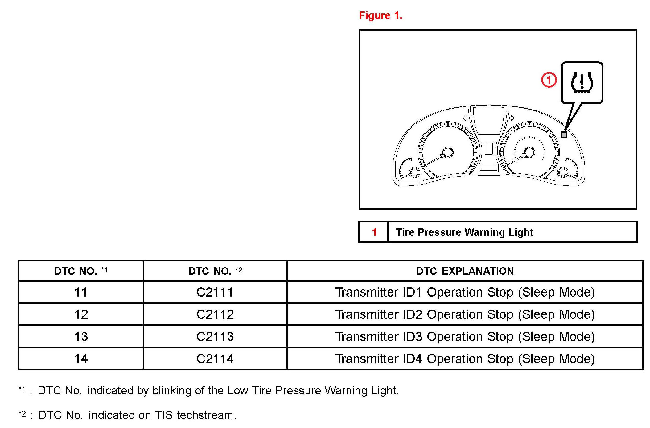 ^ The DTCs will automatically clear when the tire pressure warning valves/sensors are activated.