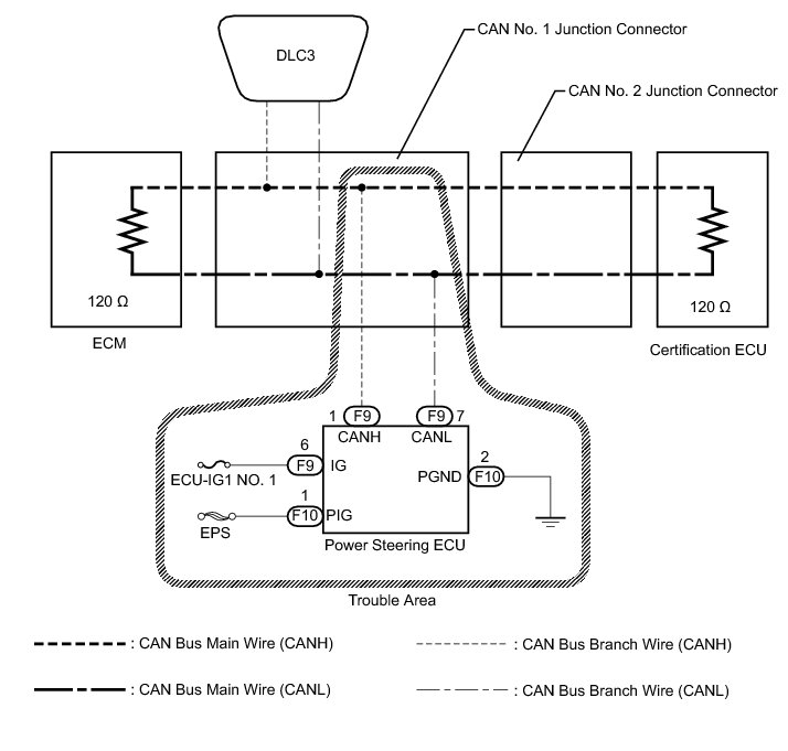1. CHECK CAN BUS WIRE FOR DISCONNECTION (POWER STEERING ECU BRANCH WIRE)