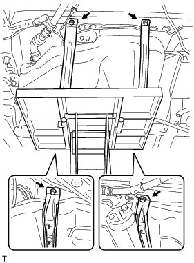 Slowly raise the lifter so as not to drop the fuel tank assembly.