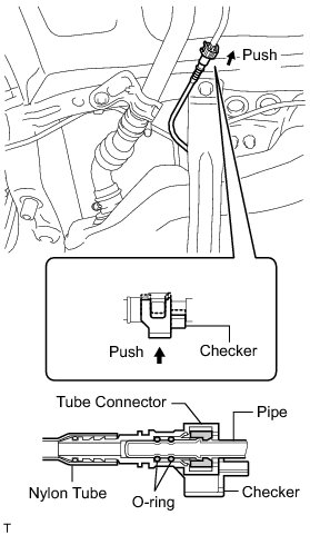 (1) Push the quick connector and push in the checker to lock the retainer.