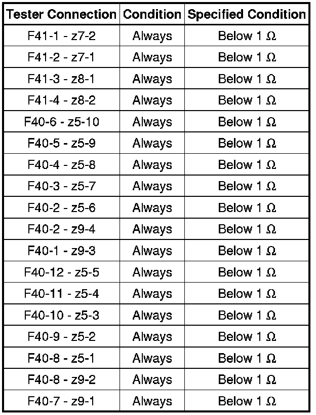 (2) Measure the resistance between each terminal of the spiral cable according to the table below.
