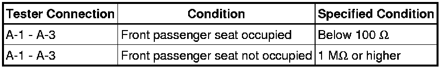 If the result is not as specified, replace the occupant detection sensor (separate type front seat cushion pad).
