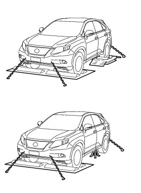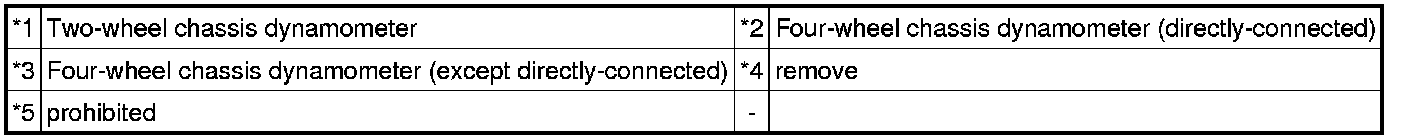 * Be sure to follow the instructions specified in the illustration. Failure to do so may cause deterioration of AWD system function, malfunction of drivetrain components and risk of the vehicle jumping off the dynamometer.