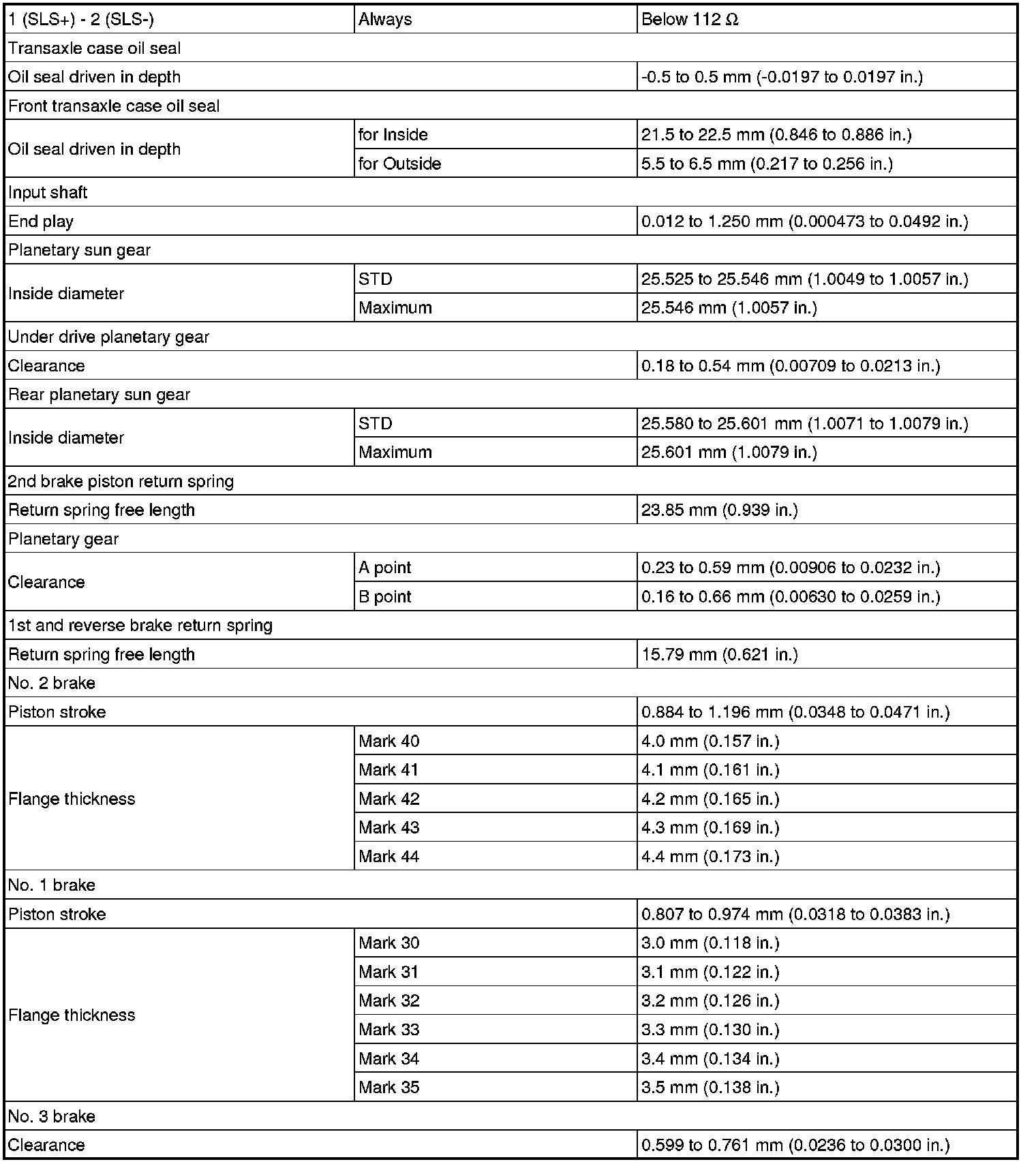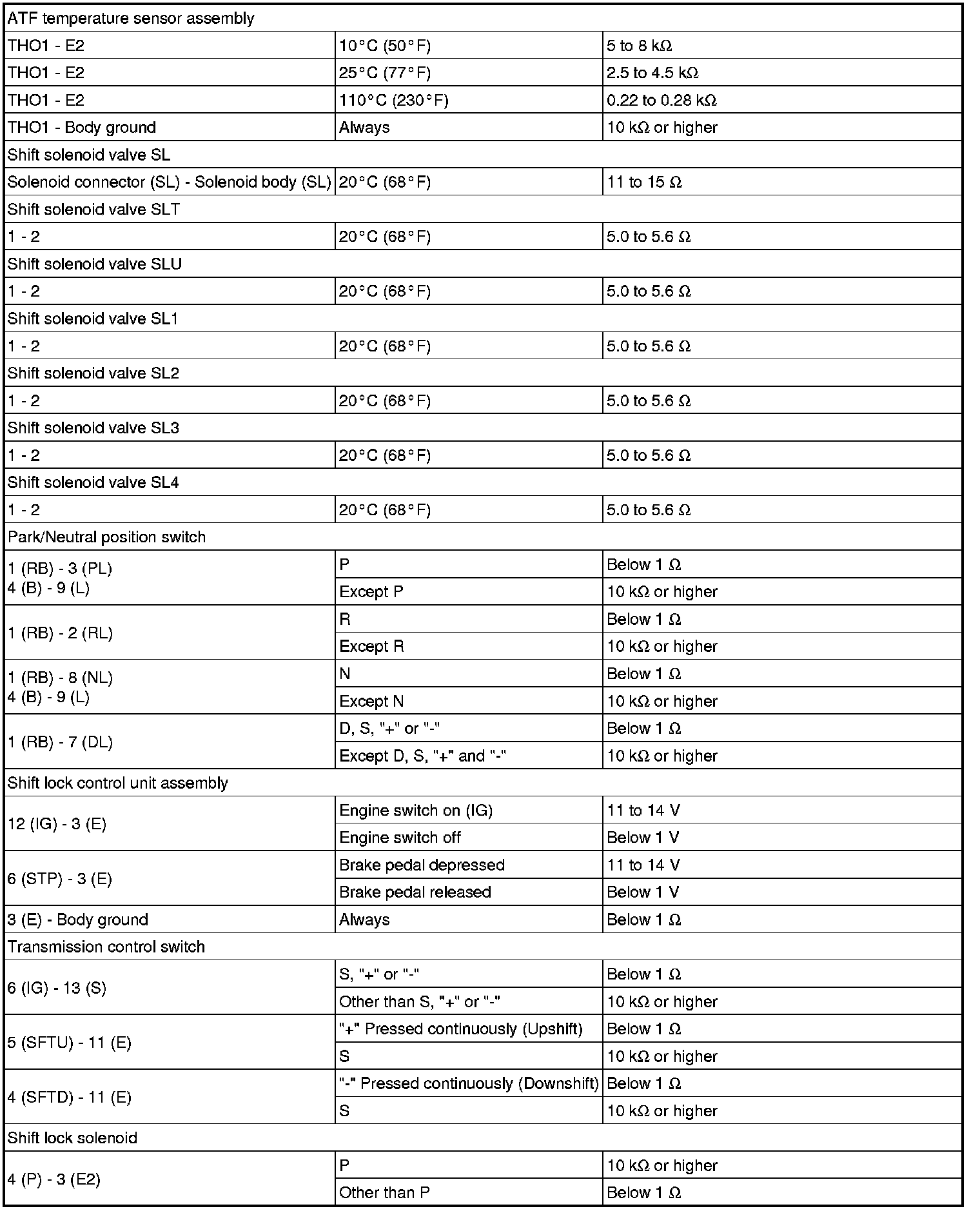 SPECIFICATIONS: U660F AUTOMATIC TRANSMISSION / TRANSAXLE: SERVICE DATA