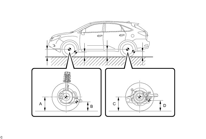 * D: Ground clearance of rear No. 2 lower suspension arm adjust bolt center