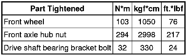 SPECIFICATIONS: DRIVE SHAFT / PROPELLER SHAFT: TORQUE SPECIFICATIONS