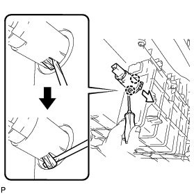 (d) Using a screw driver, disengage the claw and remove the power point socket assembly from the power point socket cover as shown in the illustration.