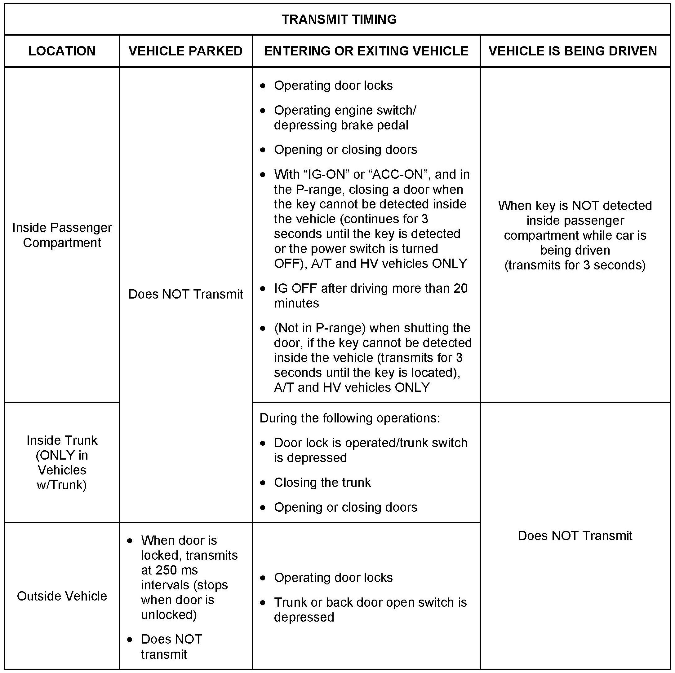 Some customers may inquire about the frequency and power output of the Smart Key/Smart Entry Systems used on various models. The Smart Key/Smart Entry systems conform to all applicable FCC rules and Industry Canada Radio Standards Specifications (RSS). This bulletin details the applicable specifications for these systems.