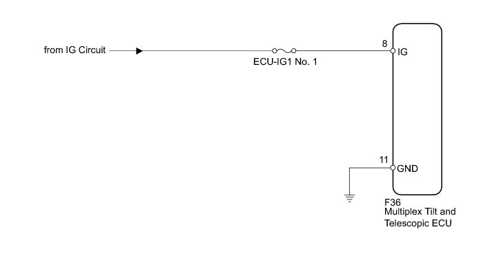 When the engine switch is turned on (IG), the IG power source circuit supplies positive (+) voltage to the multiplex tilt and telescopic ECU.