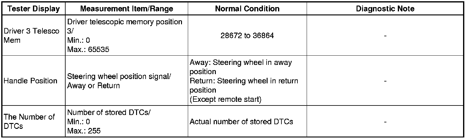 (e) Enter the following menus: Body Electrical / Tilt & Telescopic / Data List.