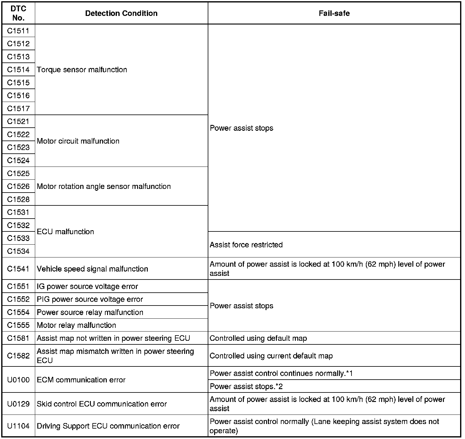 POWER ASSIST SYSTEMS: POWER STEERING SYSTEM: FAIL-SAFE CHART