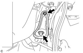 (c) Temporarily tighten the rear No. 1 suspension arm assembly to the rear suspension member with the bolt (B) and nut.