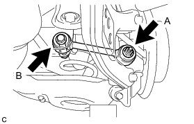 (a) Using a ball joint lock nut wrench, fully tighten the bolt (B).