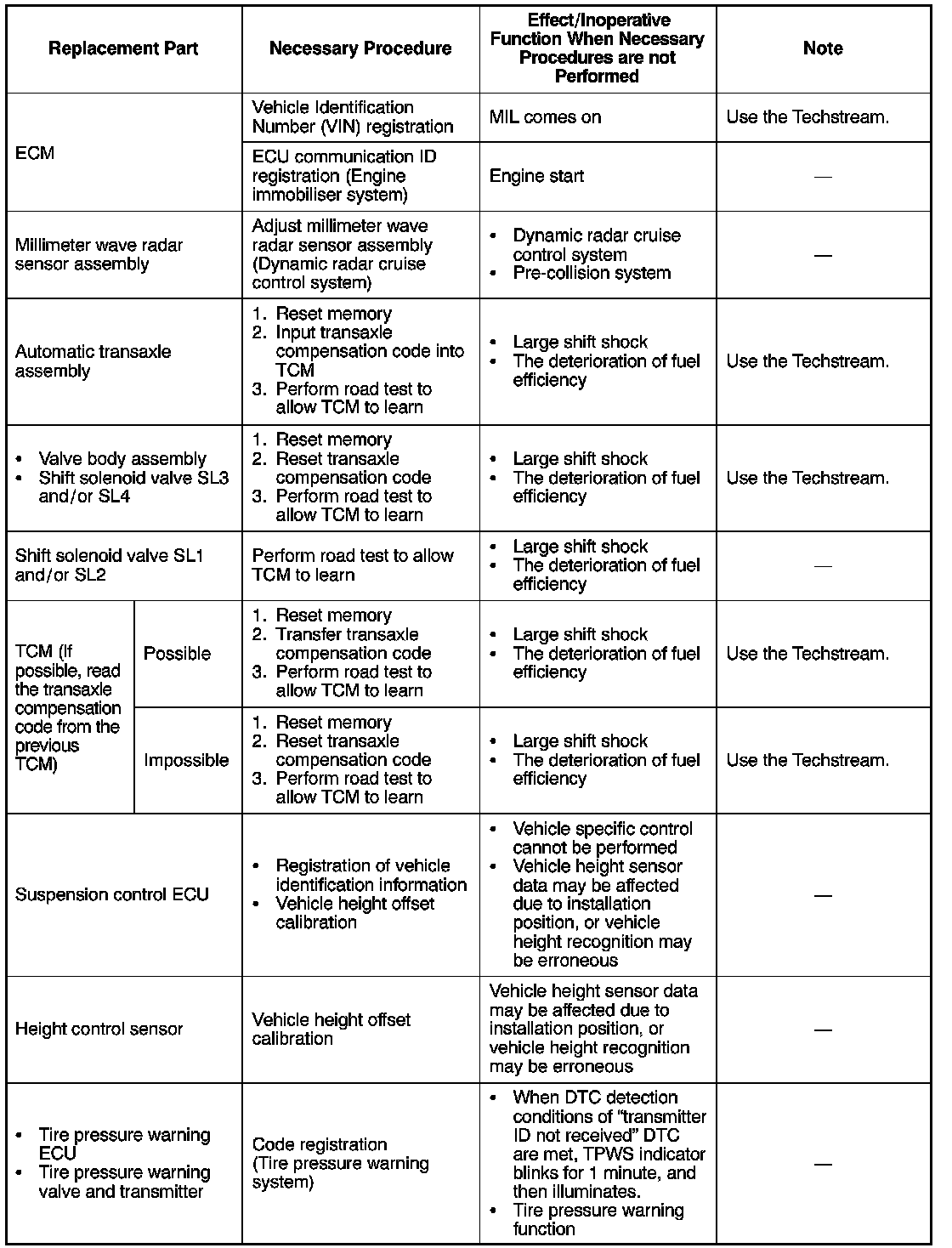 Procedures Necessary When ECU or Other Parts Are Replaced
