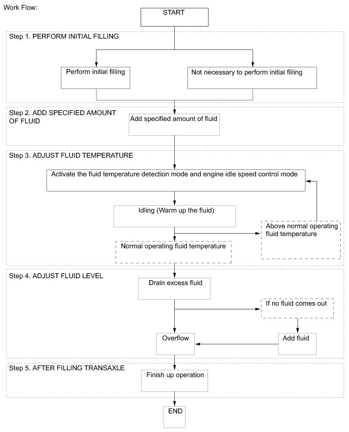 * Fluid filling procedure should be performed when the D shift indicator is on (the fluid temperature is within the normal operating temperature range).