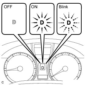 In the fluid temperature detection mode, the D shift indicator comes on, goes off, or blinks depending on the fluid temperature.