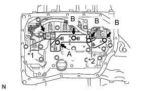 (c) Install the ATF temperature sensor assembly and clamp to the valve body with the 4 bolts.