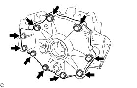 (a) Remove the 10 bolts and differential side bearing retainer.