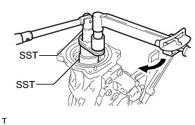 (d) If the preload is insufficient, use SST to tighten the differential drive pinion nut 5 to 10° at a time. Measure the preload and repeat the adjustment as necessary until the preload matches the specified torque.