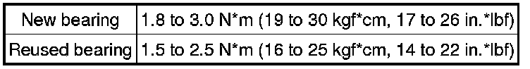 Standard Total Preload (Starting Torque)