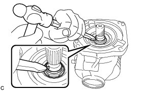 (a) Using a chisel and a hammer, stake the rear drive pinion nut as shown in the illustration.