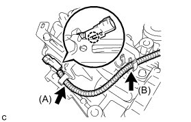 (d) Install the clamp (B) to the connector bracket.