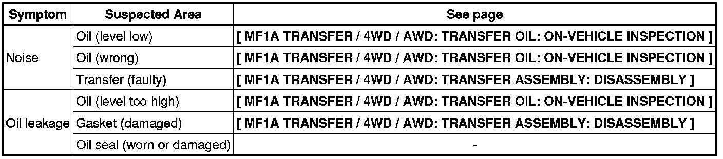 MF1A TRANSFER / 4WD / AWD: TRANSFER SYSTEM: PROBLEM SYMPTOMS TABLE