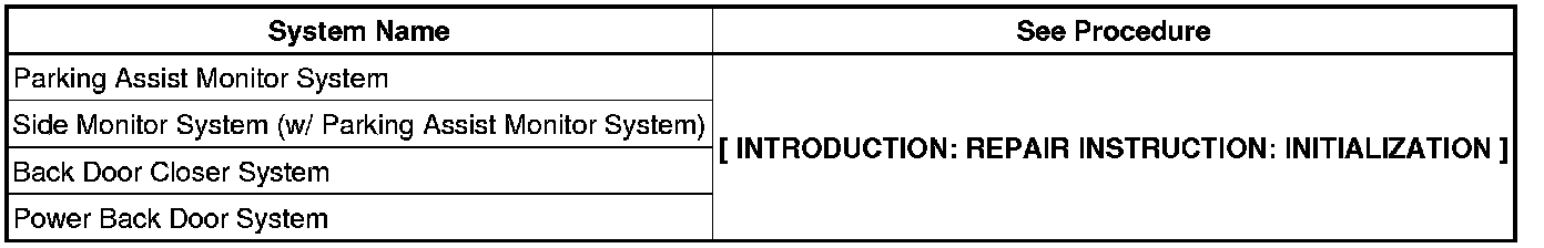 When disconnecting the cable from the negative (-) battery terminal, initialize the following systems after the cable is reconnected.